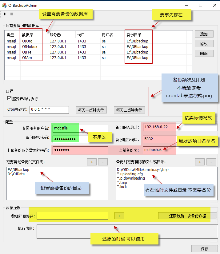运行:OIBackupAdmin.exe 进行运行参数设置
